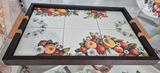 Vassoio Osaka in legno con mattonelle decoro Jardin