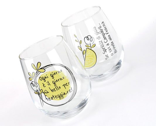 Set 2 bicchieri in vetro decoro "ogni giorno"