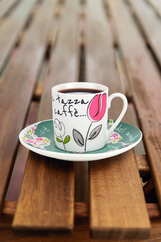 Set di due tazze caffè con piattino in porcellana decoro "natural"