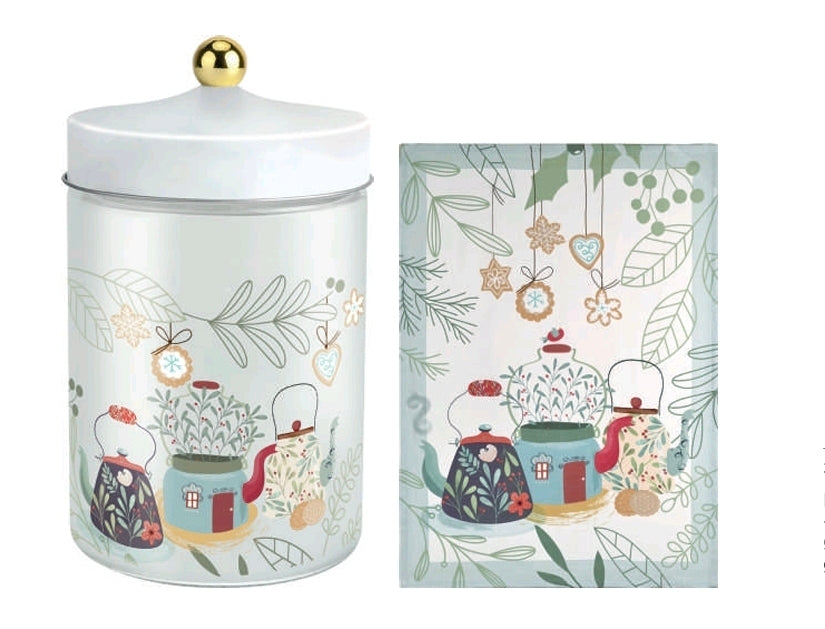 Barattolo in vetro satinato con coperchio in latta, a vite