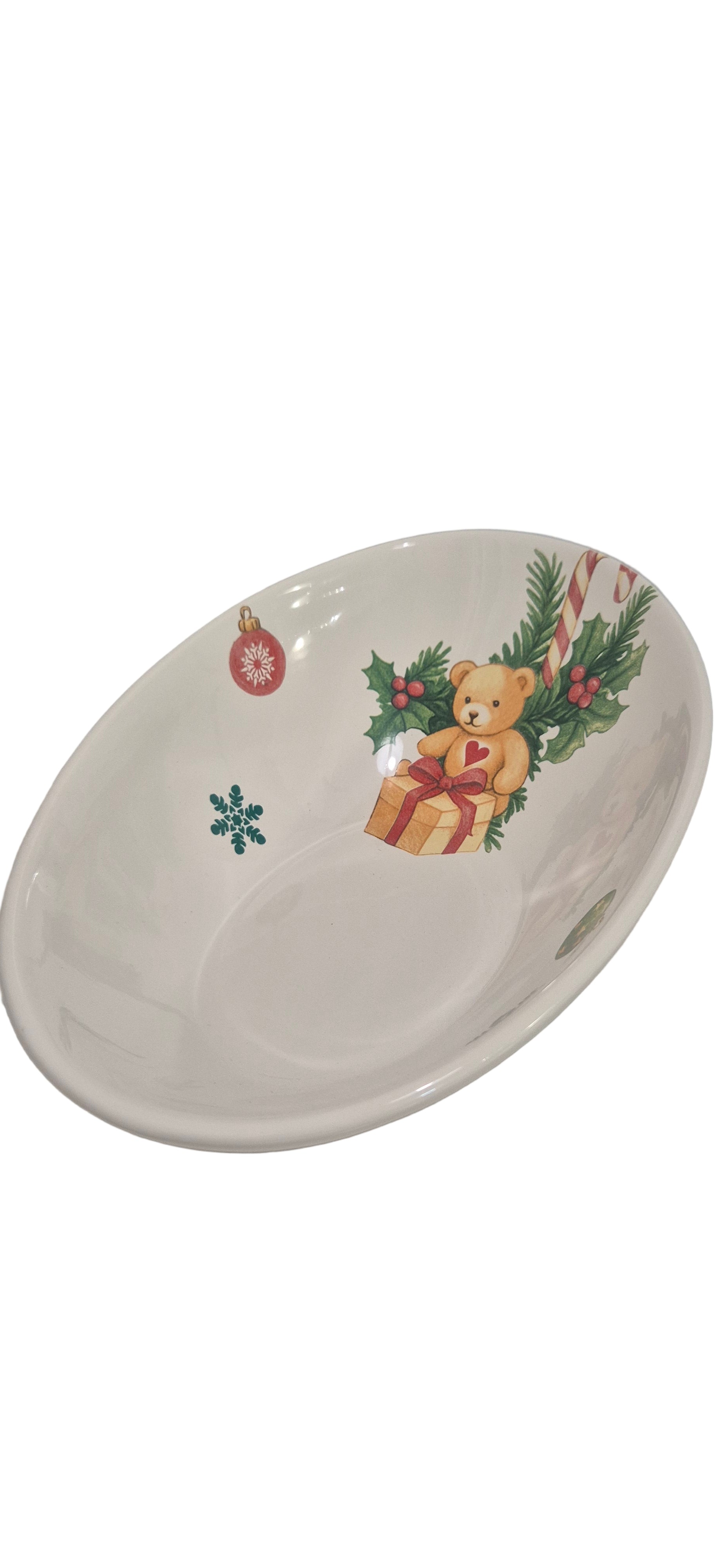 Insalatiera o portadolciumi con decoro Noel, forma ovale di sbieco