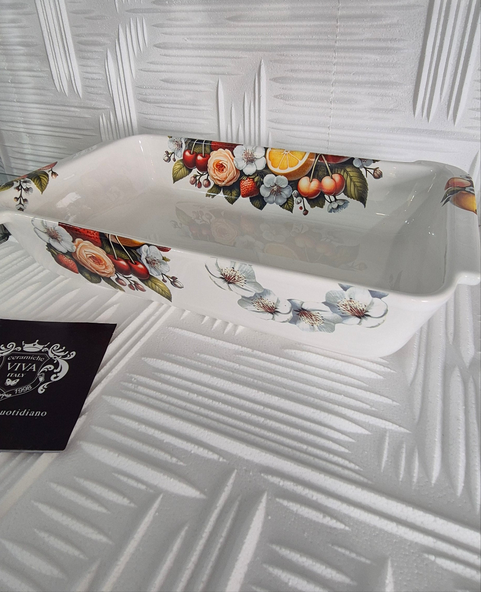 Pirofila in ceramica da forno, decoro Jardin, con manici