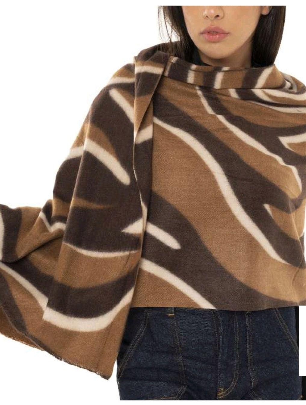SCIARPA IN LANA CON STAMPA FANGO E MARRONE 90X180