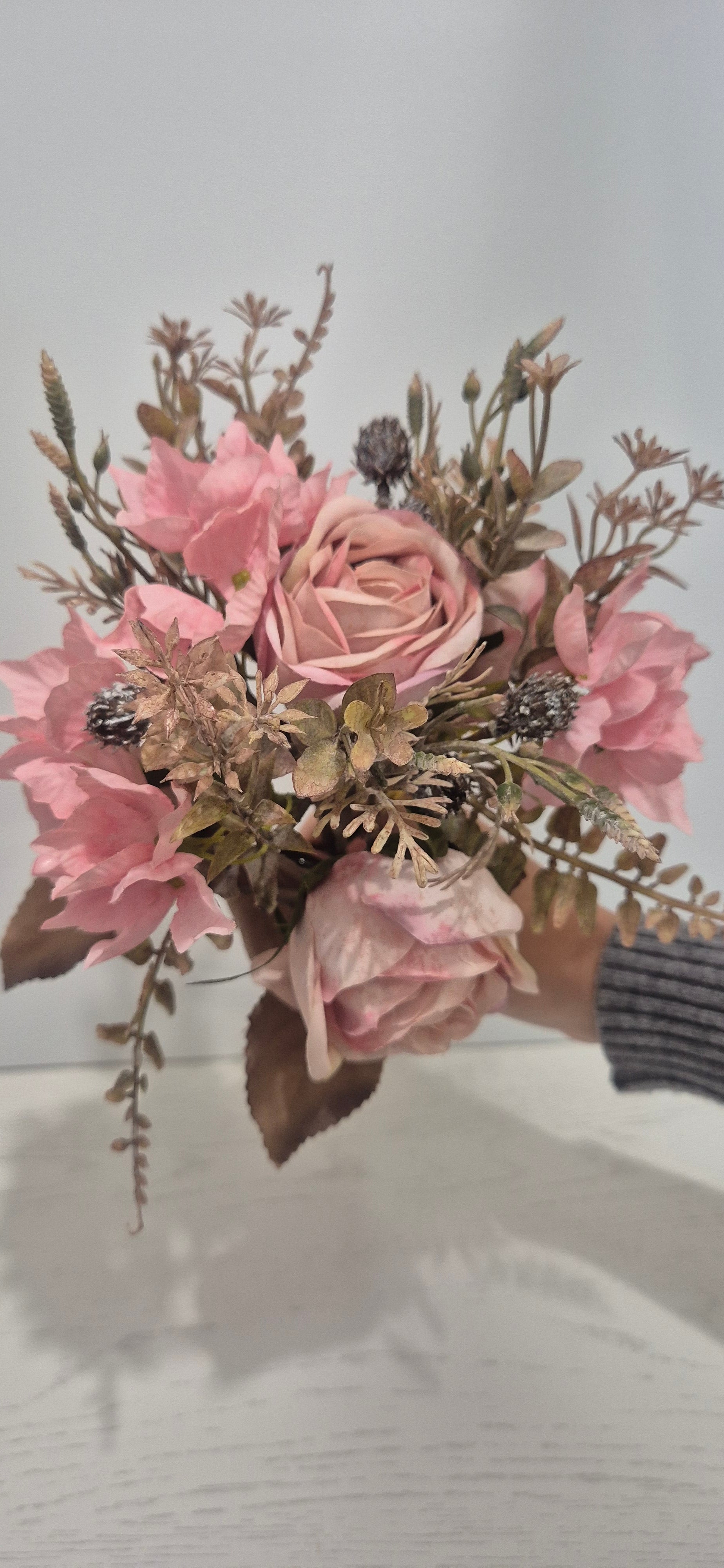 Bouquet flooreale artificiale di 4 steli con rose e fiori di campo